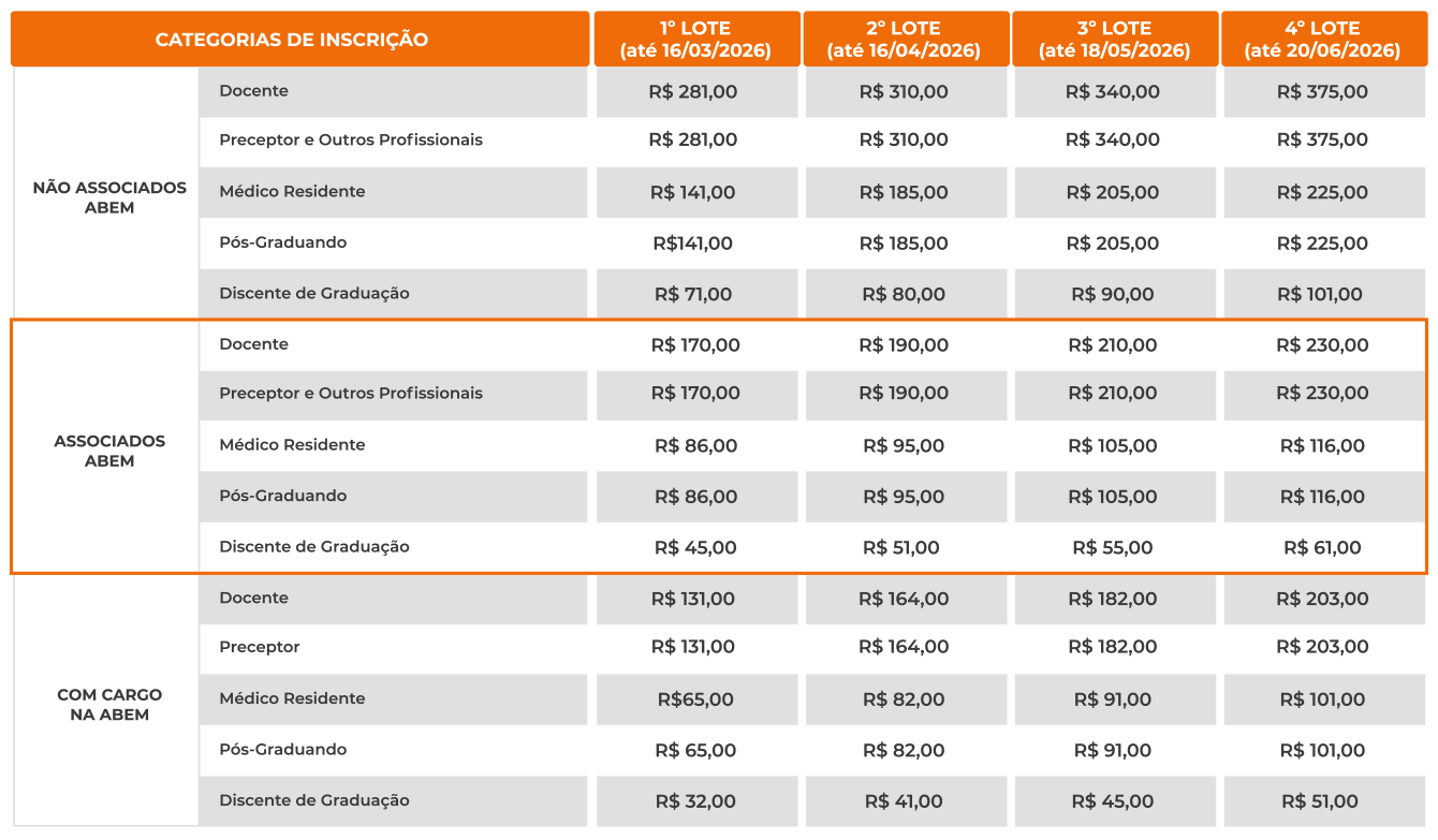 A inscrição pela modalidade de Pacote de Inscrições estará disponível a partir do 2º LOTE (17/03/2026).